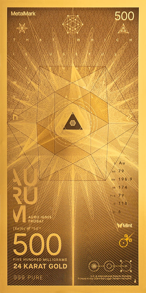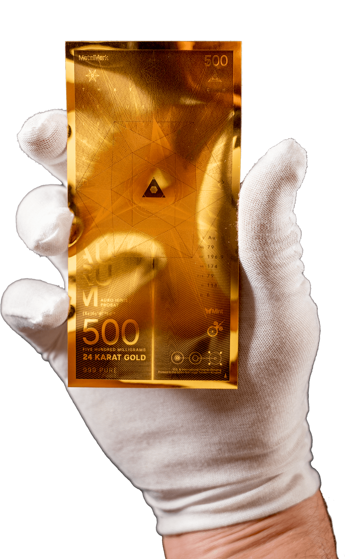 Gold is now fractionalized and functional. Physical bills for your safe or wallet, made with a precise amount of real, 24-karat gold. Verifiably secure, and undeniably gorgeous. This is the MetalMark Standard.