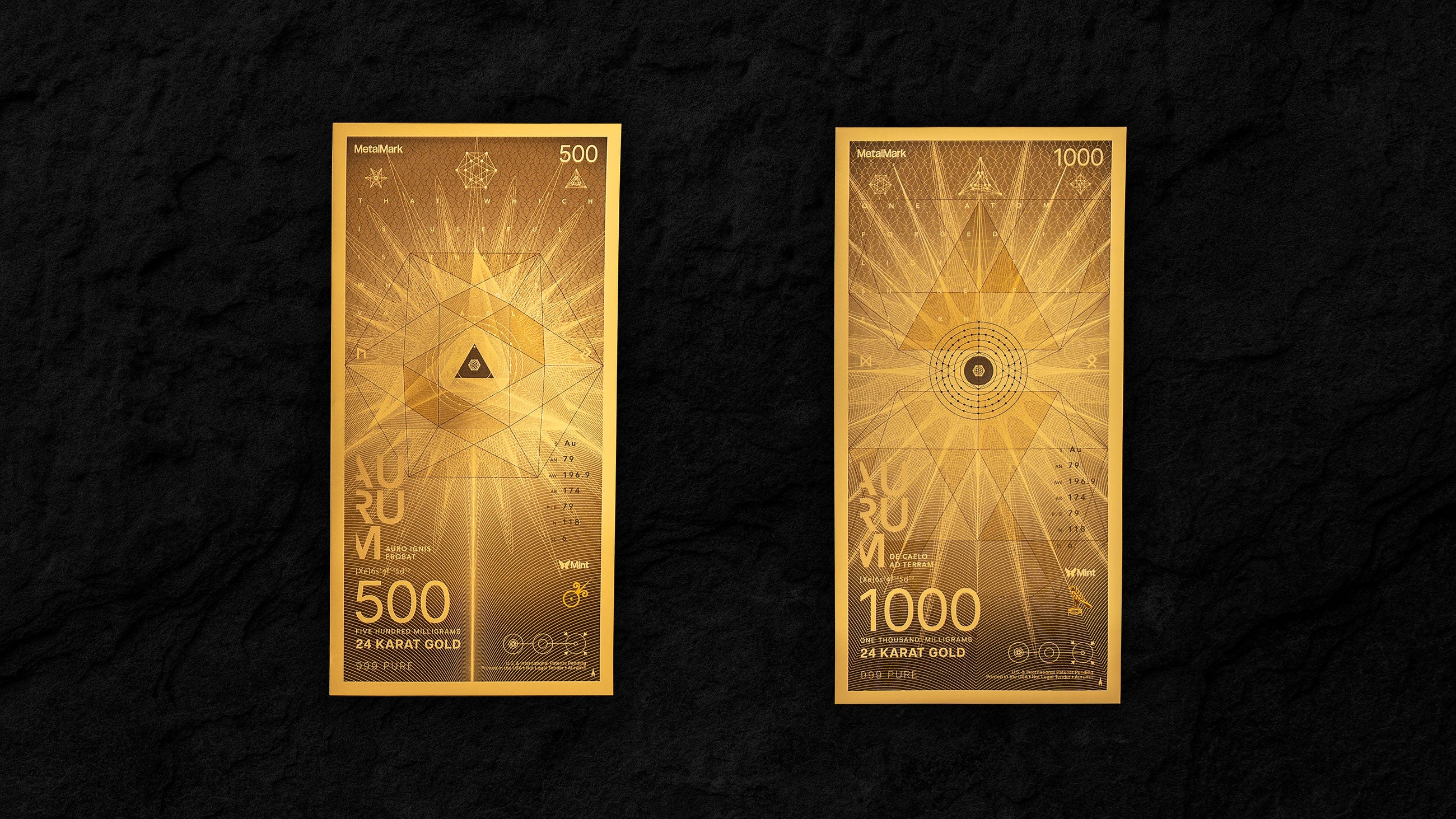 MetalMark mints certified gold bills in a familiar banknote form. Like other banknotes, they’re flexible, fit in wallets, and represent value.